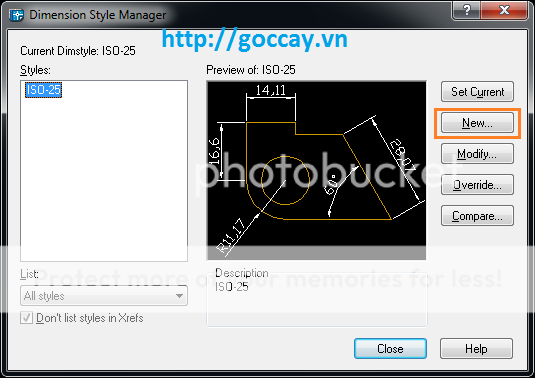 xuất hiện hộp thoại Dimension Style Manager: