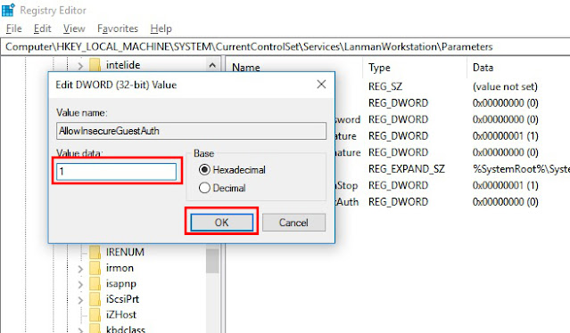 “AllowInsecureGuestAuth” = dword: 1